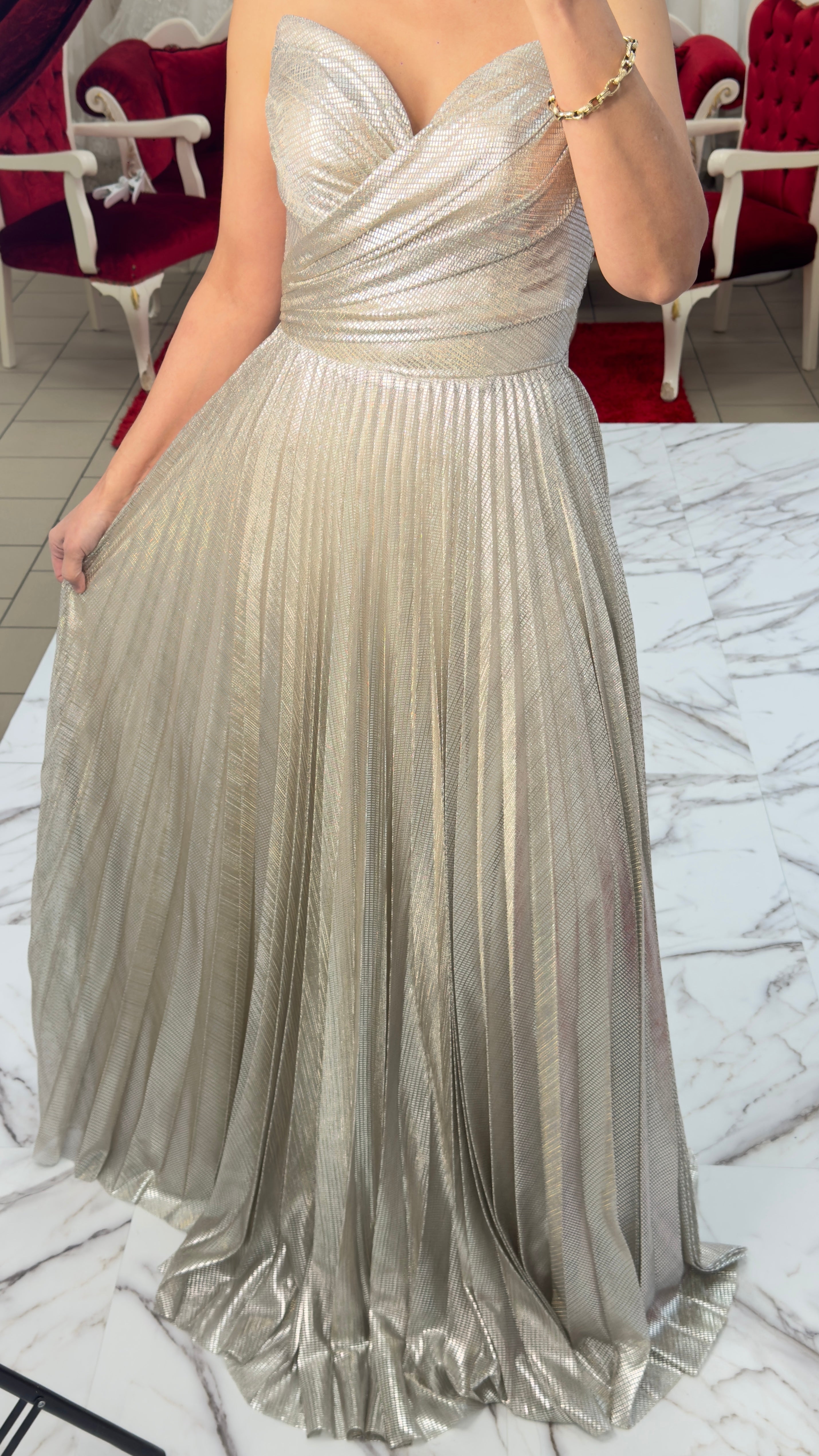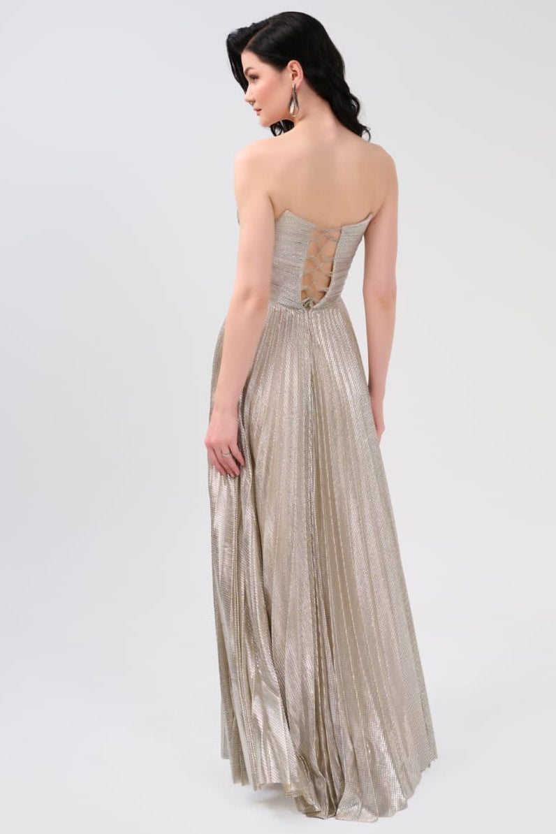 Elegantes Abendkleid mit schimmerndem Plissee-Rock C2139